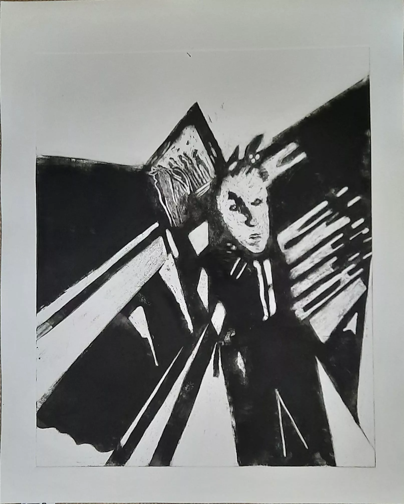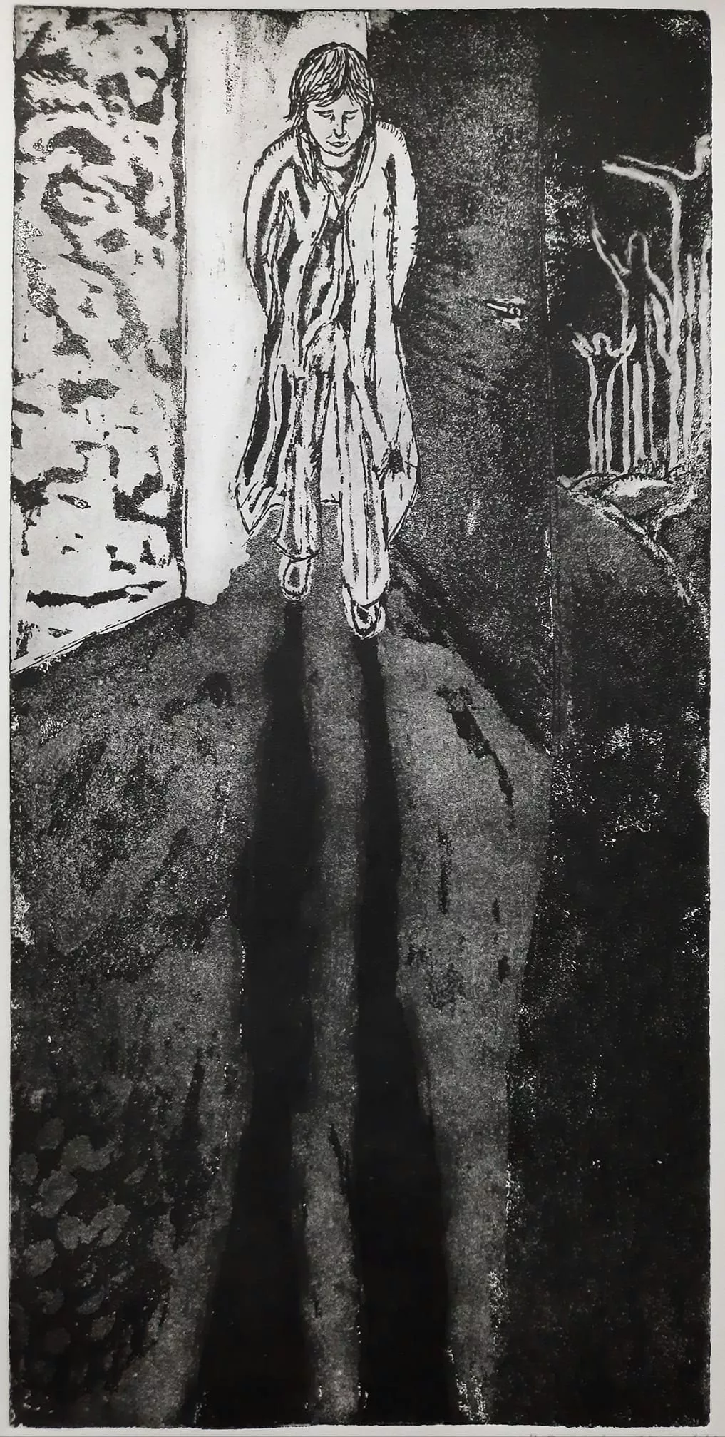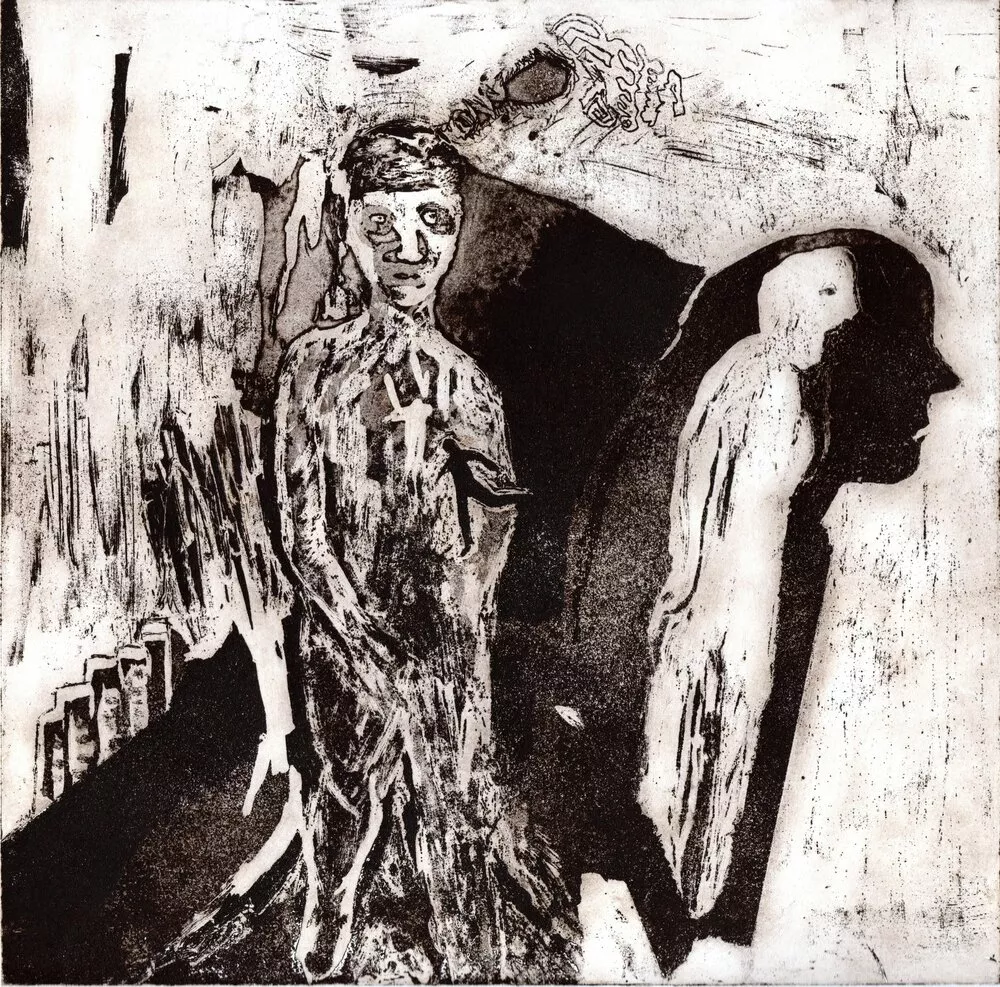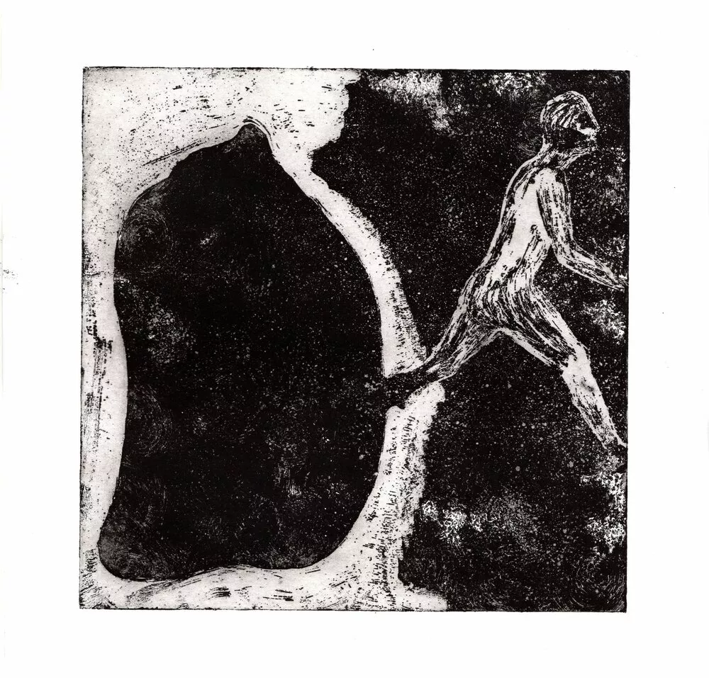 Eau forte et aquatinte sur zinc, L’ombre, 20 sur 20 cm, décembre 20