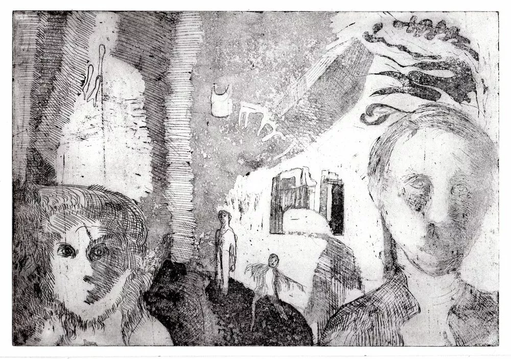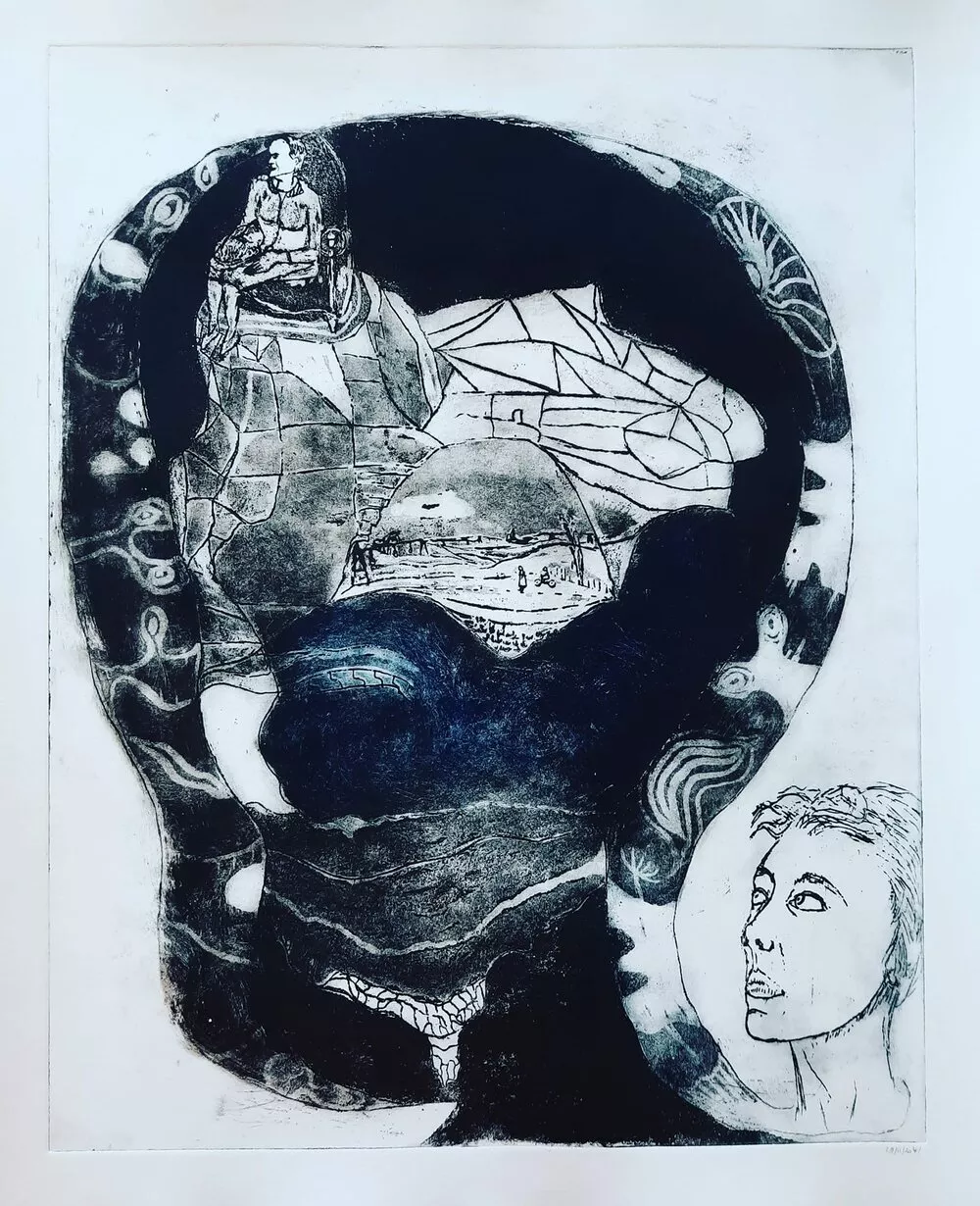 Eau forte et aquatinte sur zinc, Strates du rêve, 40 sur 50 cm, novembre 2020