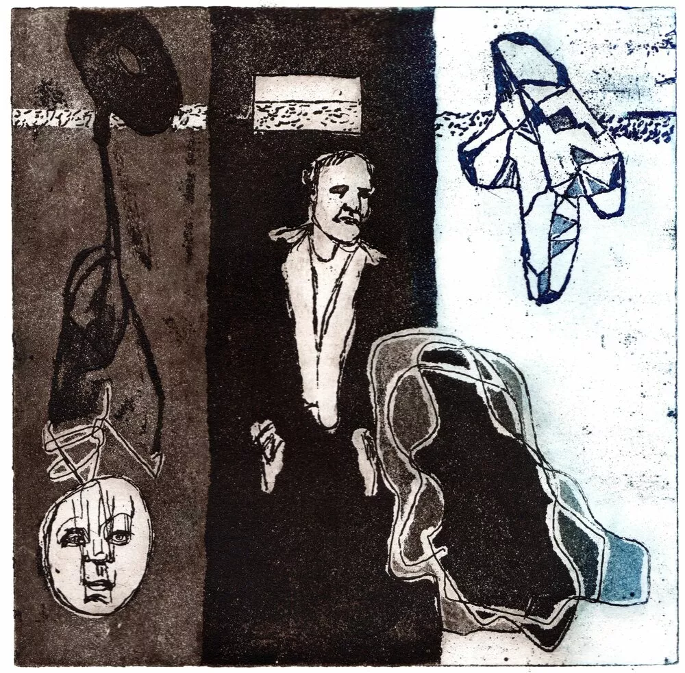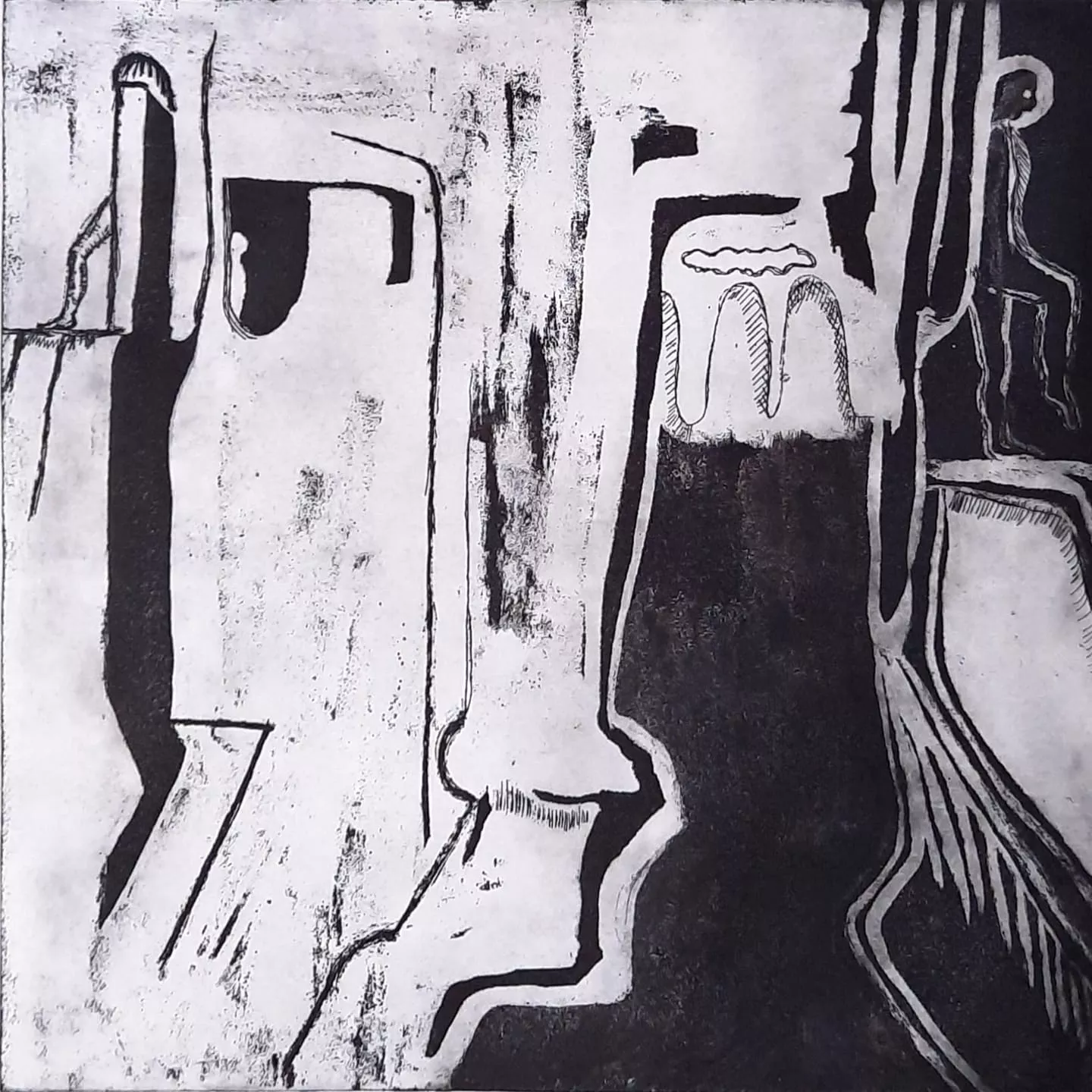 Eau forte et aquatinte sur zinc, collage et ombres, 20 sur 20 cm, novembre 20
