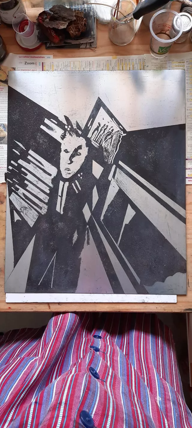 Eau forte et aquatinte sur zinc, Dans l’atelier, 20 sur 40 cm, novembre 20