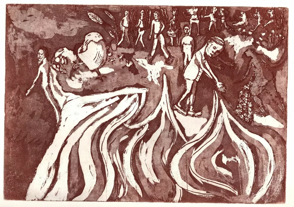 Eau forte et aquatinte sur plaque de zinc, Les nageurs, Mai 20