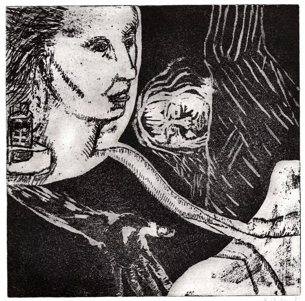 Eau forte et aquatinte sur plaque de zinc, 10 sur 10 cm, décembre 2020