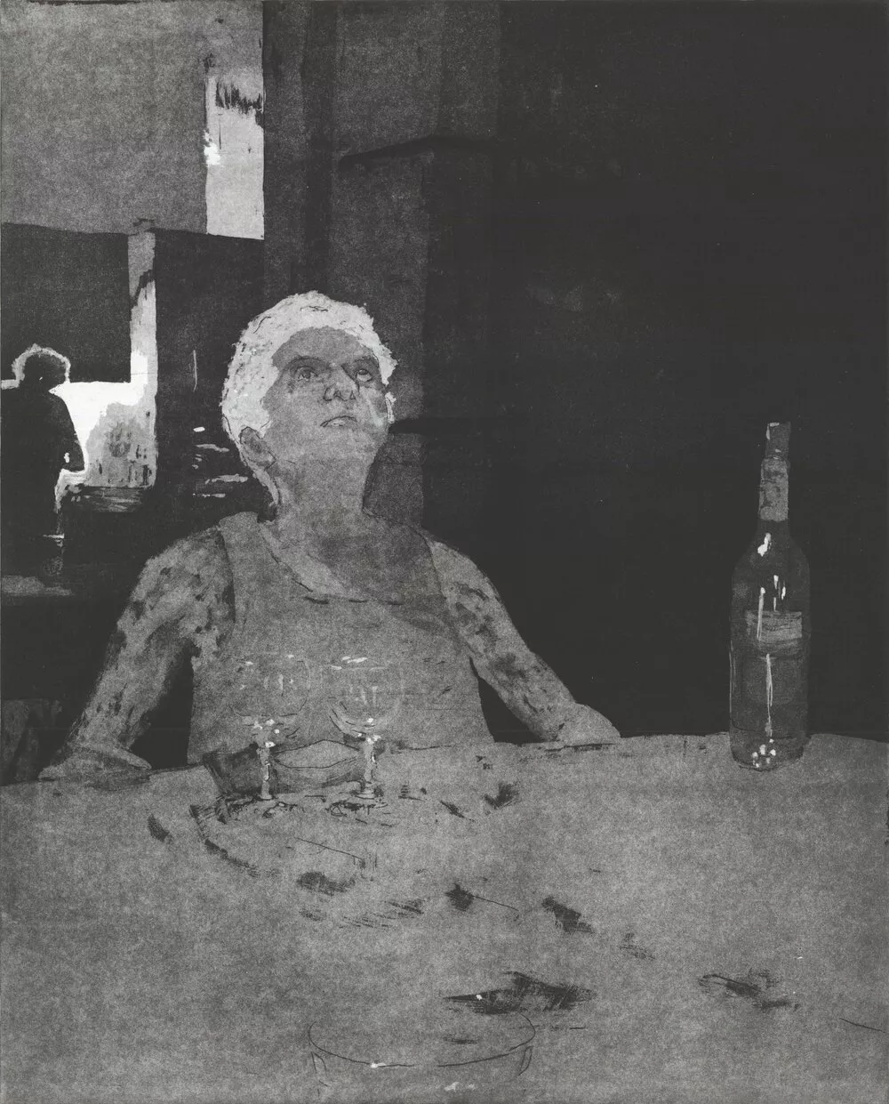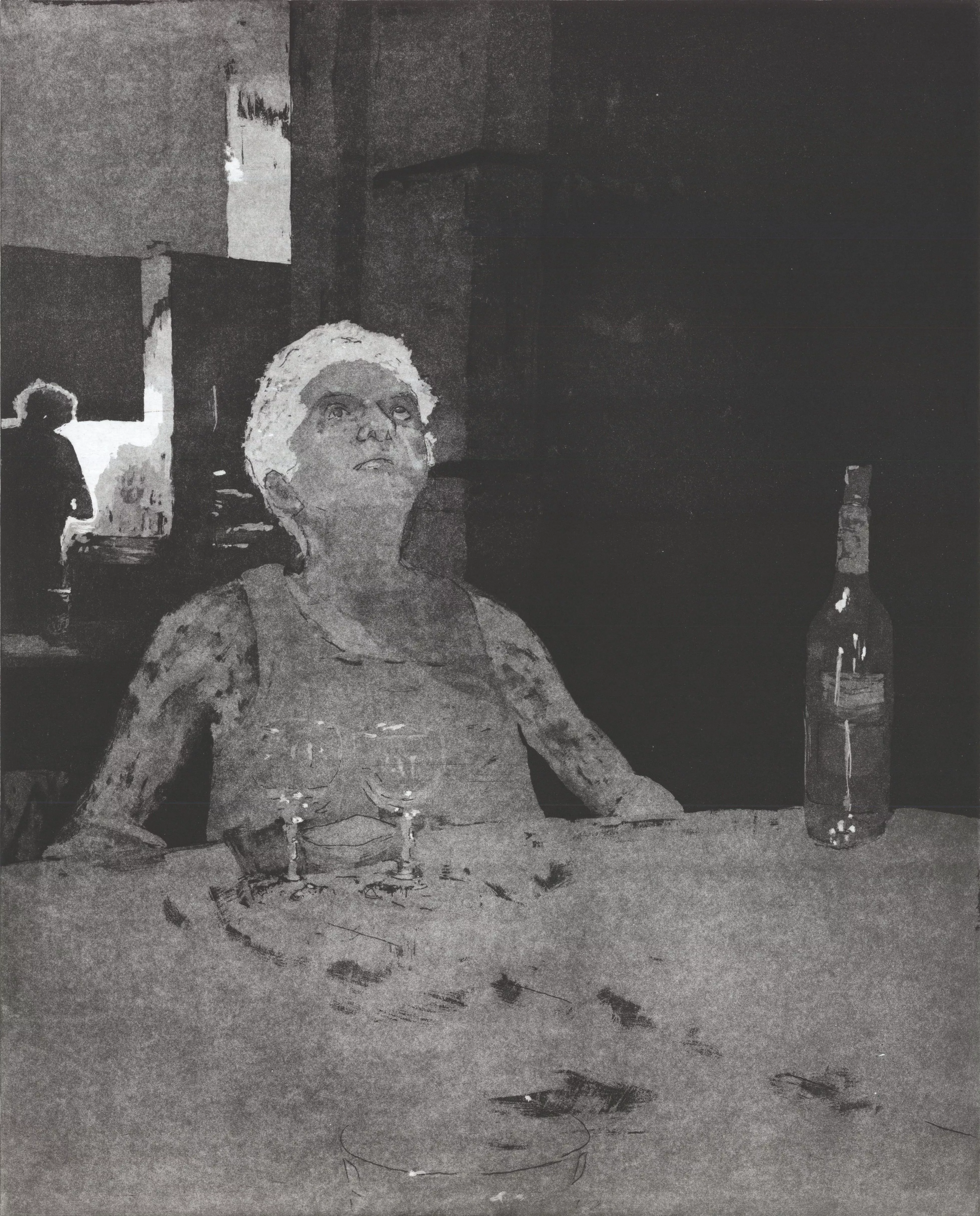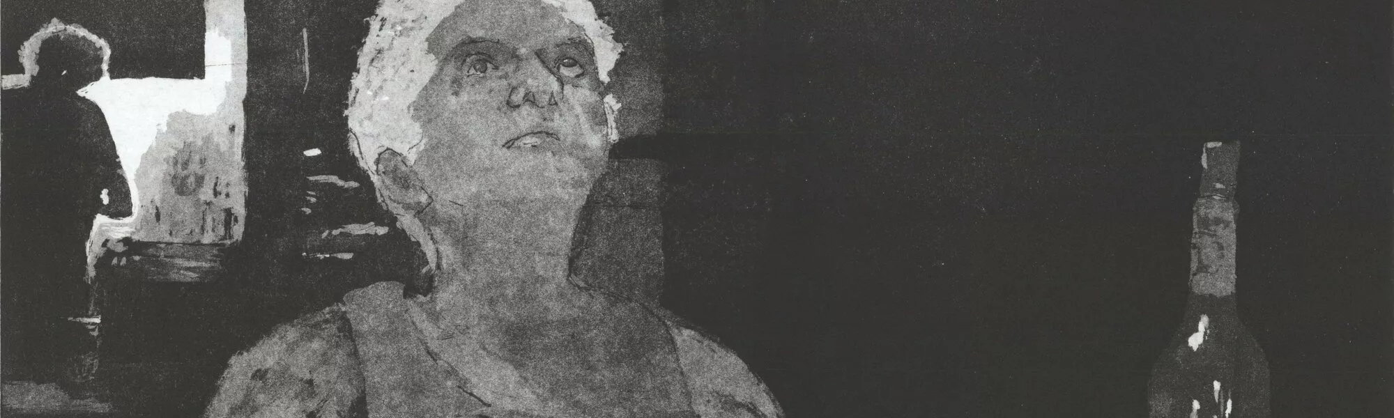 "Maman", Gravure sur zinc, eau forte façon vernis mou et aquatinte, 20 sur 15 cm, 10-06-24. RIP