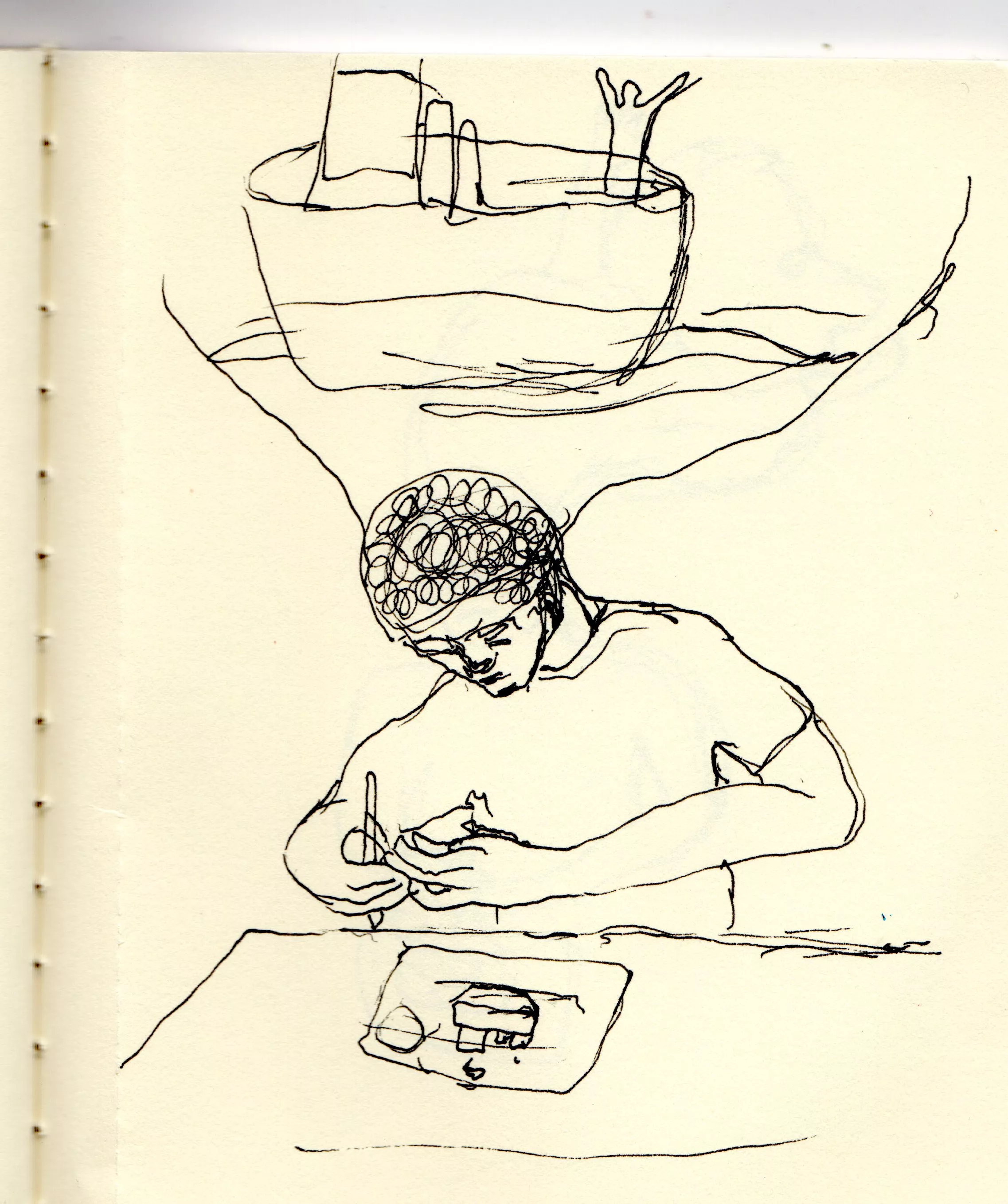 Les ateliers au cours desquels je dessine sont ceux de la maison d’arrêt de Brest, en compagnie des majeurs et des mineurs.